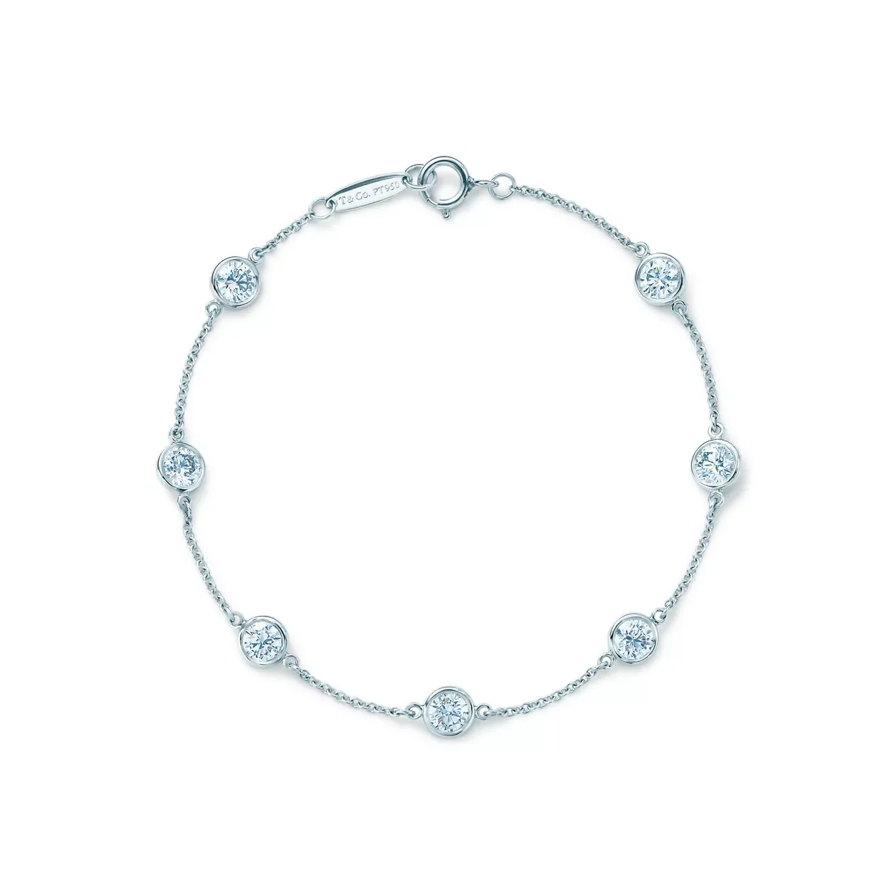Tiffany round diamonds catch the light and make it dance. Bracelet in 18k gold with seven round brilliant diamonds. 7" long. Carat total weight .98. Original designs copyrighted by the Nando and Elsa Peretti Foundation.